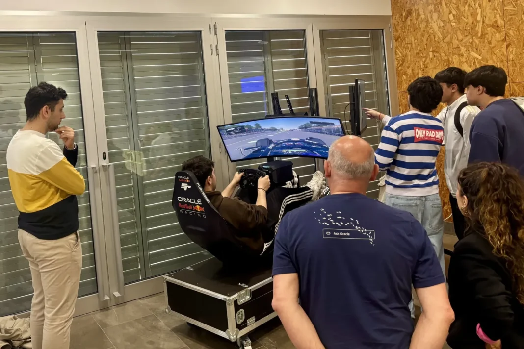 La jornada ha incluido además una experiencia con simuladores profesionales de conducción. En dicha experiencia, los estudiantes han podido comparar sus vueltas mediante métricas de rendimiento y visualización de datos en tiempo real.