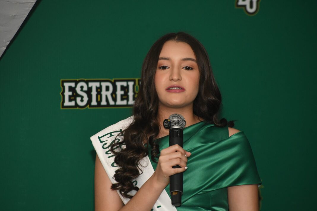 La joven madrina cursa el quinto año del bachillerato en el Colegio Los Pininos y ha realizado estudios de locución, área que complementa su aspiración de convertirse en periodista.
