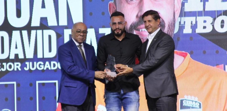 Moca.- El colombiano Juan David Díaz, mediocampista del Cibao FC, fue galardonado como el Jugador del Año de la Liga Dominicana de Fútbol (LDF) 2024 en la prestigiosa gala celebrada anoche en la Asociación Mocana de Ahorros y Préstamos.