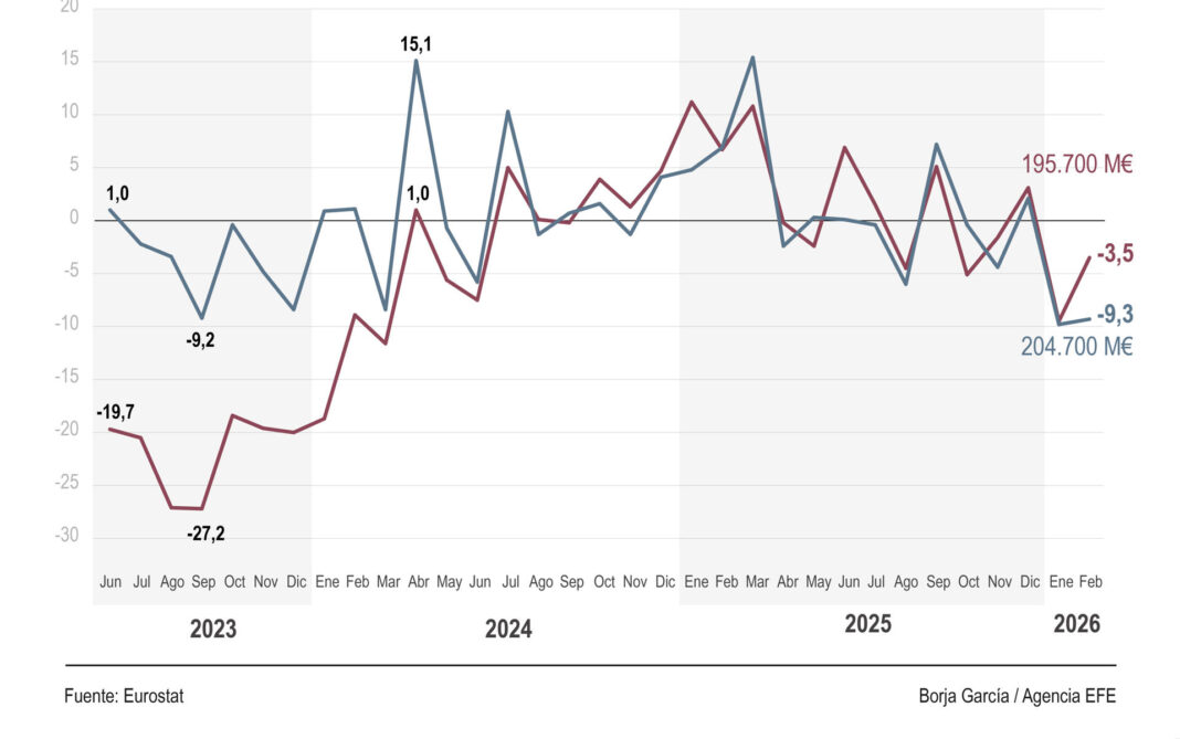 Mientras tanto, el sector energético continuó reduciendo su déficit, pasando de 27.600 millones de euros en febrero de 2025 a 22.100 millones de euros en febrero de 2026.