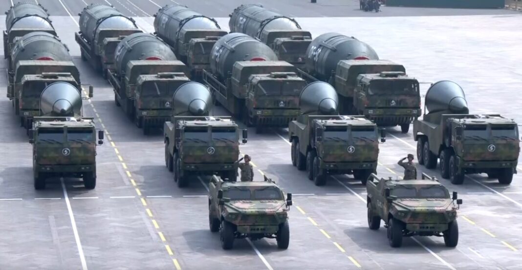 The triad includes the air-based long-range missile JingLei-1, the submarine-launched intercontinental missile JuLang-3, and the ground-based intercontinental missiles DongFeng-61 and DongFeng-31.