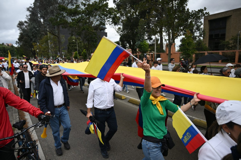 Among the crowd, there was also Verónica Barquero, a Costa Rican citizen and mother of Colombians: "My children are Colombian and my heart is Colombian. I march for peace, for democracy, and for Miguel Uribe's health," she said.