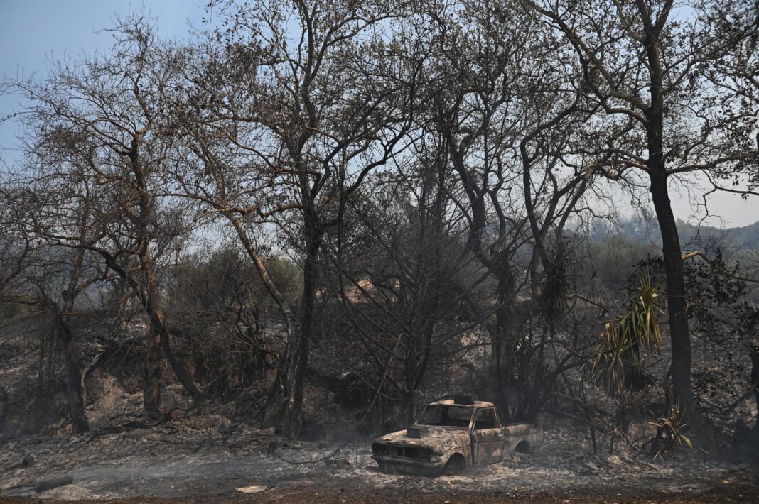 In Zakynthos, there are no active fronts, but control and surveillance efforts continue, while in Filippiada, scattered outbreaks persist. Meanwhile, in Achaea, in the northern Peloponnese, eleven aerial vehicles are working to contain the flames, and on the island of Chios, in the Aegean Sea, the fire is advancing in hard-to-reach areas, supported by two planes and six helicopters.