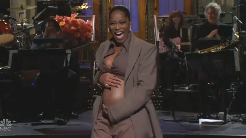 La famosa actriz Keke Palmer dejó sorprendidos a todos cuando anunció que está esperando a su primer hijo durante su participación el popular show Saturday Night Live.