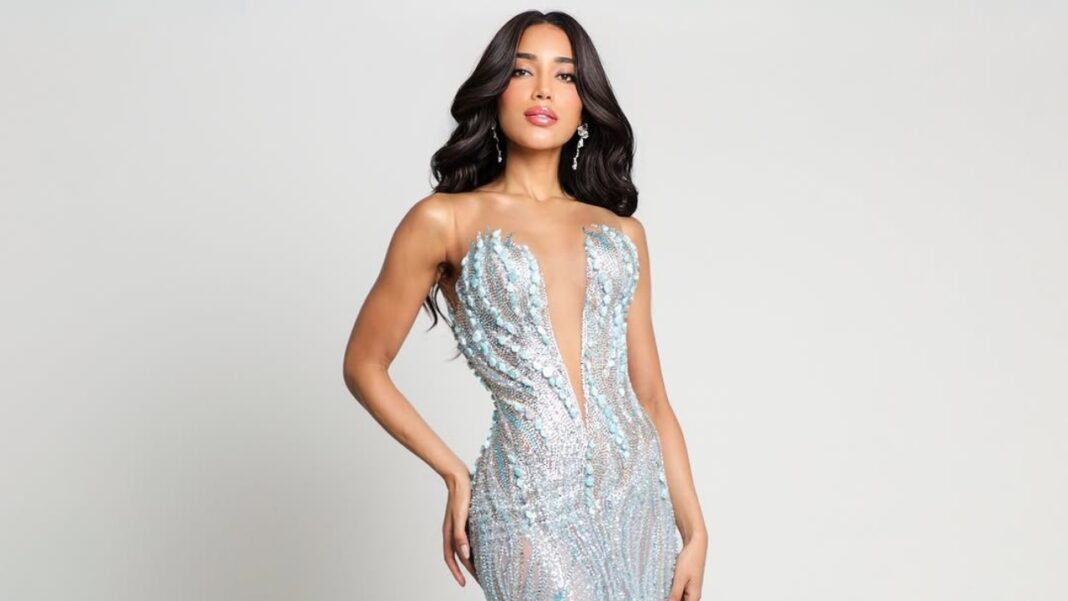 Para complementar el look, la candidata llevó accesorios a juego y el cabello suelto en ondas suaves, logrando una apariencia elegante, sofisticada y perfectamente acorde con la majestuosidad del vestido.