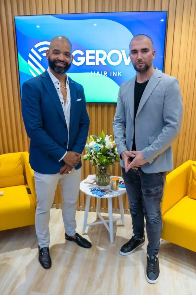Santo Domingo.- El dominicano Erik Roberto, primer barbero del mundo en incursionar en la micropigmentación capilar y el estadounidense Jonathan Gerow, pionero de esta técnica, abrieron formalmente las puertas de Gerow Hair Ink República Dominicana, ubicada en el sector de Piantini de la ciudad capital.