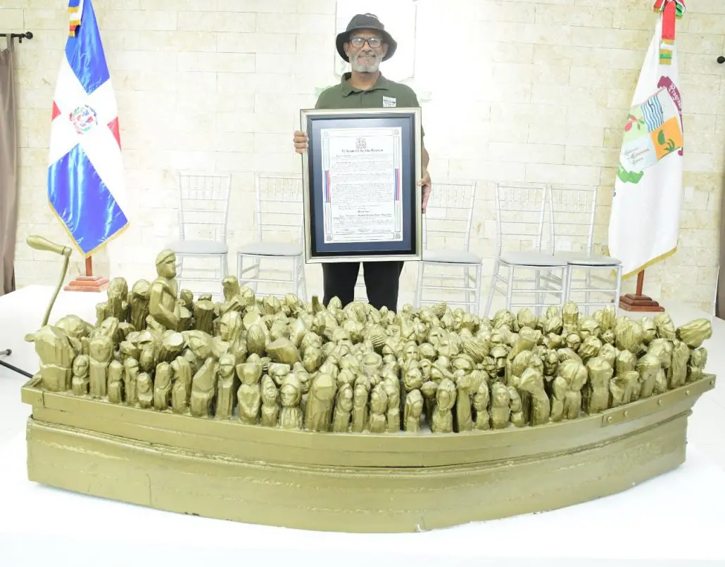 Miches.- En un acto encabezado por el vicepresidente del Senado, Santiago José Zorrilla (El Seibo), la Cámara Alta entregó un reconocimiento al escultor Genaro Antonio Reyes Mercedes (Cayuco), por sus aportes al desarrollo del arte y su trayectoria profesional, poniendo el alto el nombre de la República Dominicana.
