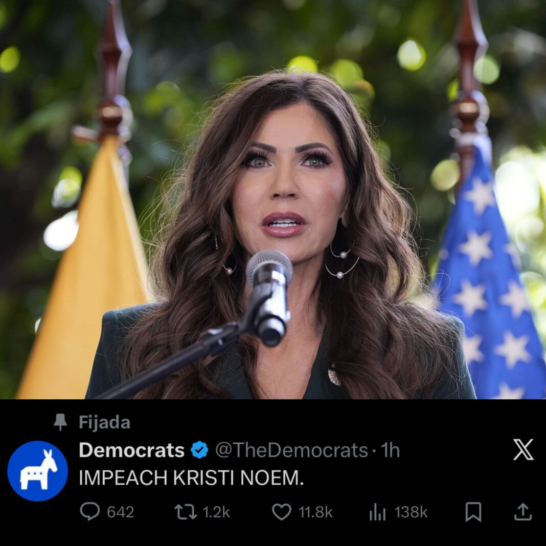 Hace apenas una hora fue publicado en la cuenta oficial de X del Partido Demócrata de los Estados Unidos un único mensaje con la frase “Juicio Político contra Kristi Noem”, lo que ha generado gran expectativa en el país norteamericano.