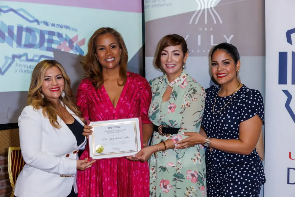 New York.- La cirujana plástica dominicana, Yily de los Santos fue reconocida en la ciudad de Nueva York, durante el taller “Secretos para crear un modelo de negocio exitoso”, en el que fungió como panelista principal.