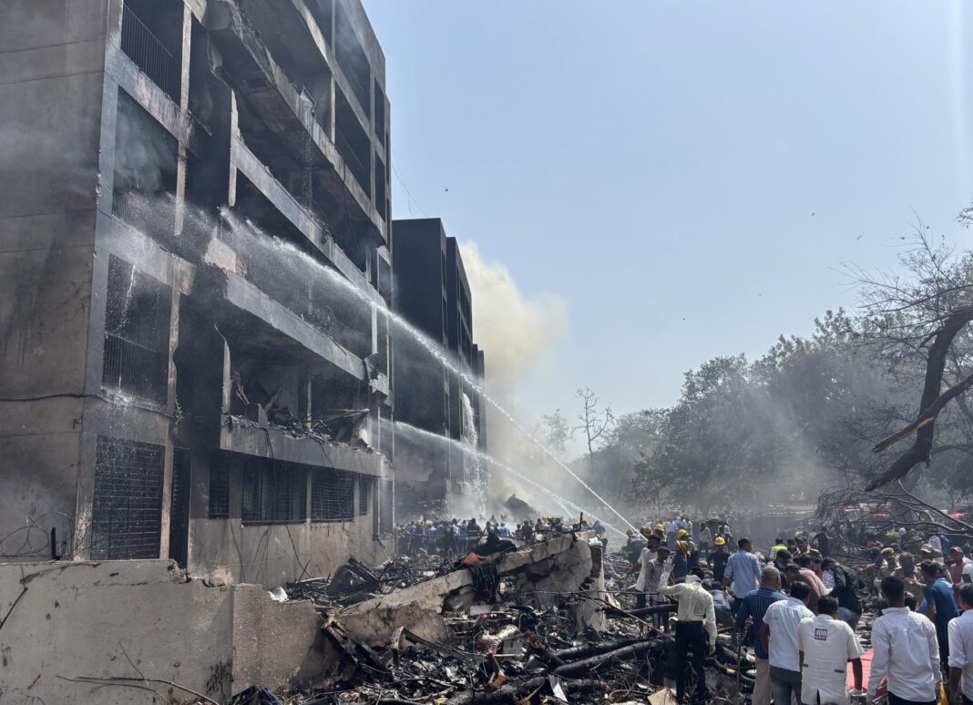 Una densa columna de humo negro es visible en el lugar del accidente, en la zona de Meghaninagar, y las autoridades han cortado varias carreteras para facilitar el acceso de los equipos de rescate.