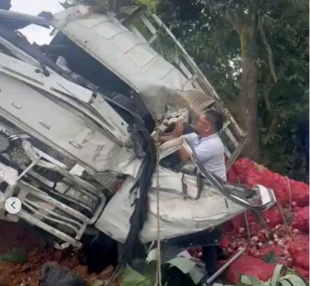 La Vega, Constanza.– Un accidente de tránsito se registró este domingo en el kilómetro 5 de la carretera Casabito, donde un camión cargado sufrió un fuerte impacto que lo dejó con daños considerables.