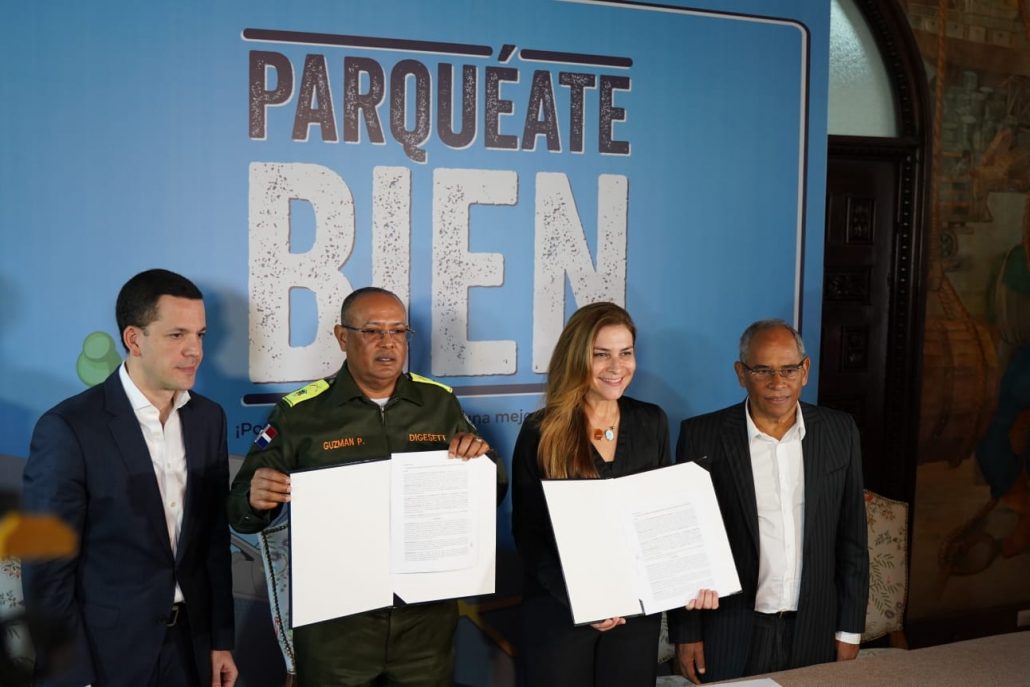 Santo Domingo.- Con el propósito de resolver la problemática del congestionamiento del tránsito en el Distrito Nacional, este miércoles la Alcaldía del Distrito Nacional (ADN), el Instituto Nacional de Tránsito y Transporte Terrestre (INTRANT) y la Dirección General de Seguridad de Tránsito y Transporte Terrestre (DIGESETT) firmaron un acuerdo de colaboración que pone en funcionamiento el proyecto piloto “Parqueáte Bien”.
