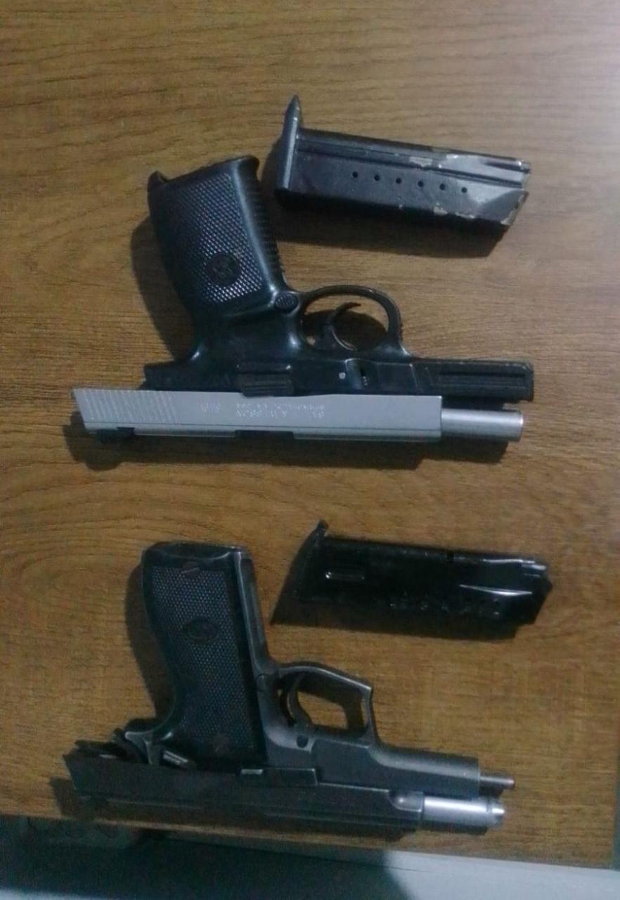 De acuerdo con el informe policial, a los detenidos Jeorge Rafael Rodríguez, alias “Santiago”, y Nil José Peña Henríquez, alias “Nono”, se les incautaron las armas: una marca Smith & Wesson, modelo SW9VE, y otra marca Daewoo, modelo DP51, ambas sin documentos legales, además de varios teléfonos celulares.
