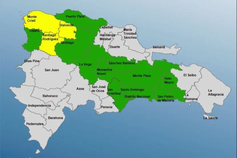 Montecristi, que estaba en alerta roja (máxima), bajó a amarilla, nivel en el que también se encuentran Valverde y Santiago Rodríguez.