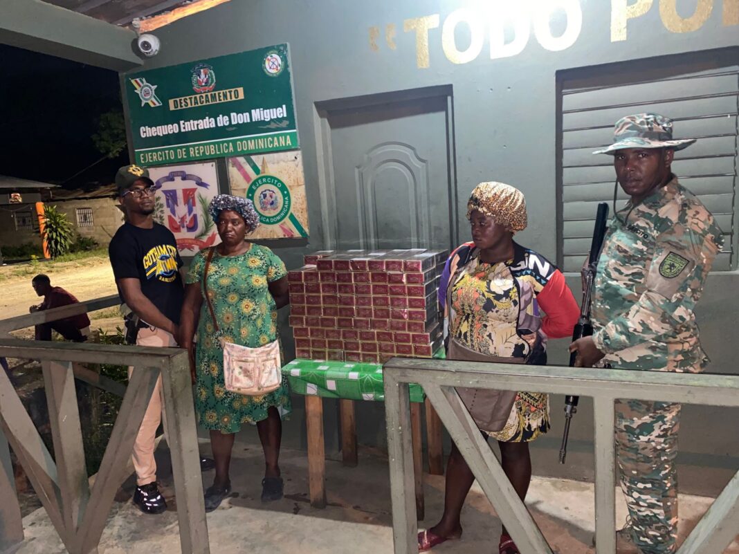 Dajabón.- Dos mujeres de nacionalidad haitiana en condición migratoria irregular, con un contrabando de 28,400 unidades de cigarrillos, fueron detenidas por miembros del Ejército de República Dominicana en la localidad de Don Miguel en Dajabón.