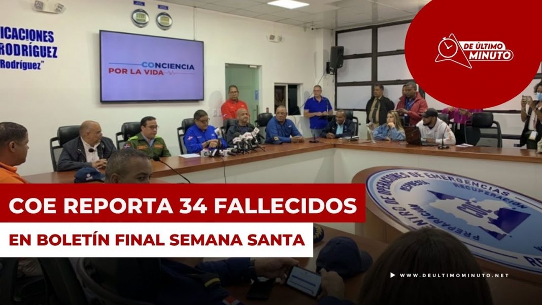 Santo Domingo.- El Centro de Operaciones de Emergencias en su boletín final arrojó un total de 34 fallecidos dentro y fuera del operativo por el asueto de la Semana Mayor.