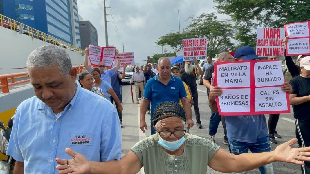 Santiago. – Decenas de residentes de la urbanización Villa María, en esta ciudad, bloquearon la autopista Duarte la mañana de este miércoles en señal de protesta por el abandono de varias obras prometidas por el gobierno, especialmente relacionadas con la infraestructura vial y el sistema cloacal.