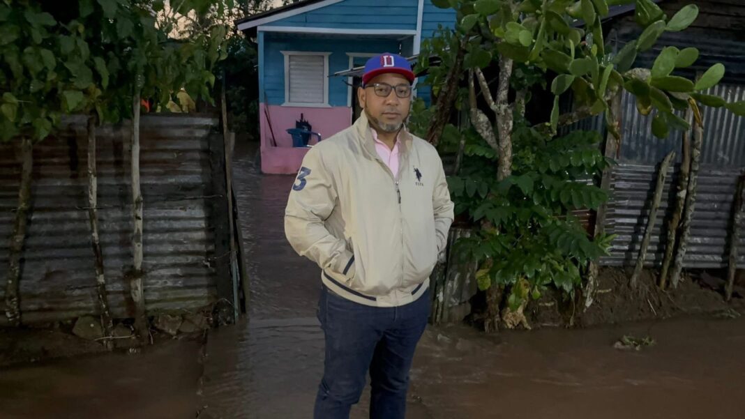 Monte Plata.– El diputado Jhon Contreras visitó la noche de este domingo el sector La Conejera, en el municipio de Bayaguana, donde varias viviendas resultaron inundadas a causa de las fuertes lluvias registradas durante la tarde.