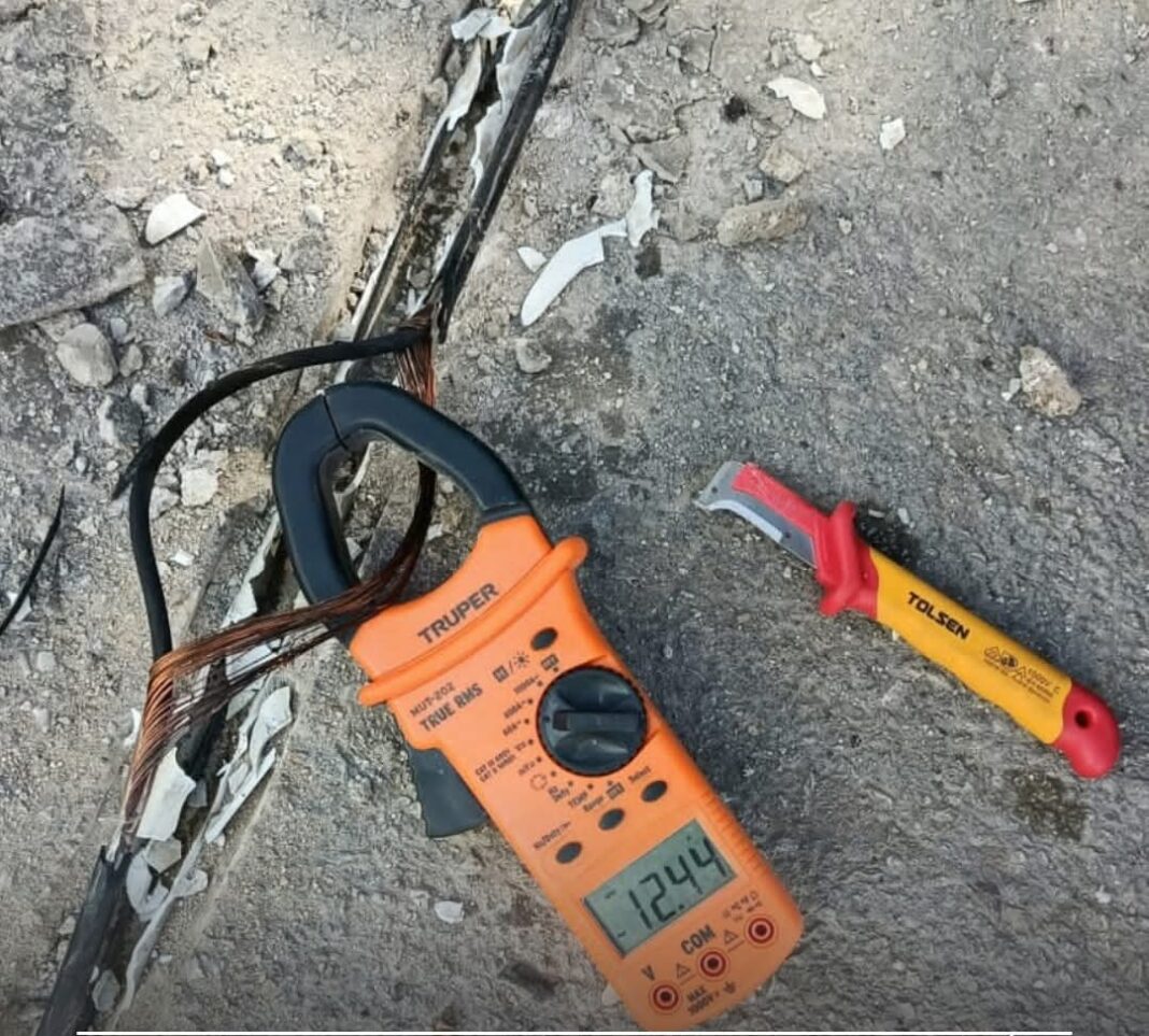 Durante el operativo, el personal identificó un cable de cobre alimentado a 240 voltios que ingresaba de forma soterrada desde la vía pública hacia el edificio. Para eliminar completamente esta irregularidad, fue necesario romper la calle para retirar el cableado ilegal diseñado para evadir los controles de consumo.