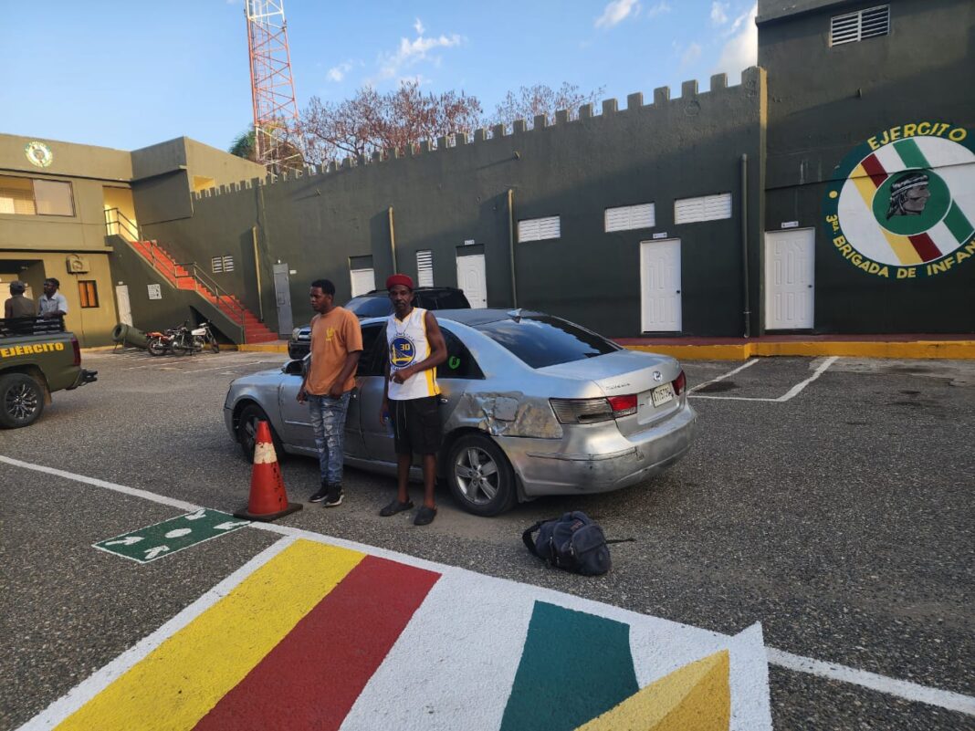 Una patrulla del 12do. Batallón de Infantería de Montaña, ERD, interceptó a Liony Francis Alcántara, quien llevaba al inmigrante haitiano indocumentado, oculto en el baúl de un carro Hyundai Sonata, color gris, placa A715730.