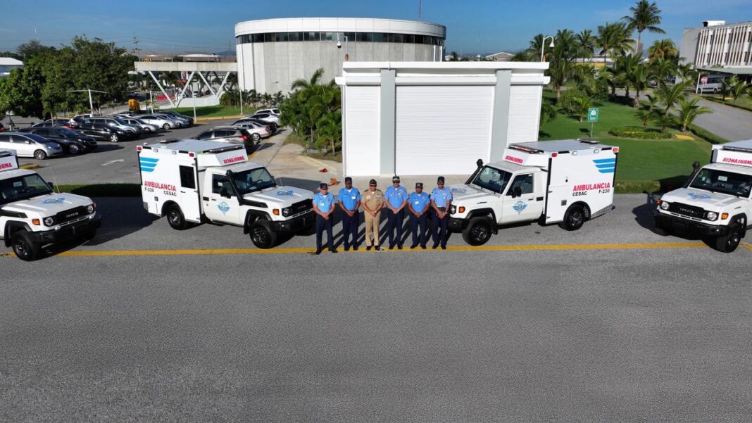 Santo Domingo. – El Ministerio de Defensa (MIDE), a través de la Industria Militar Dominicana (IMDOM), continúa consolidando su rol como motor de innovación, autosuficiencia y apoyo logístico del Estado dominicano, al hacer entrega de cuatro modernas ambulancias todo terreno al Cuerpo Especializado en Seguridad Aeroportuaria y de la Aviación Civil (CESAC), con el objetivo de reforzar las capacidades de respuesta ante emergencias médicas en los principales aeropuertos del país.