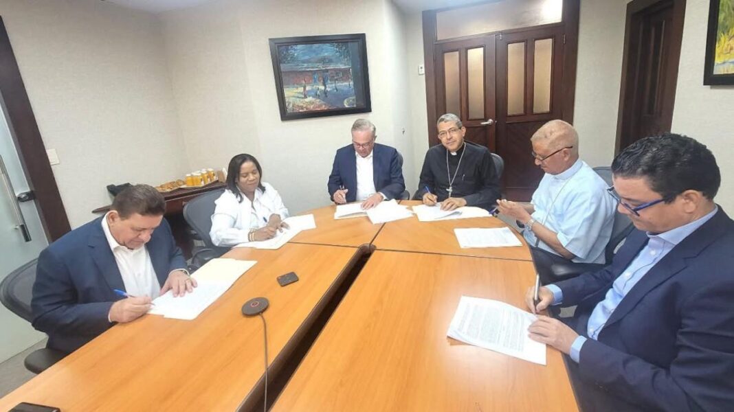 En el acto de firma participaron José E. Florentino, presidente del FONPER; monseñor Carlos Tomás Morel Diplán, rector de Ucateci; monseñor Fausto Ramón Mejía Vallejo, exrector de Ucateci; Adela Tejada Gil, gobernadora provincial; el doctor Eberto Núñez, alcalde de Bonao, y Derby de los Santos, viceministro del Tesoro y Patrimonio del Ministerio de Hacienda.