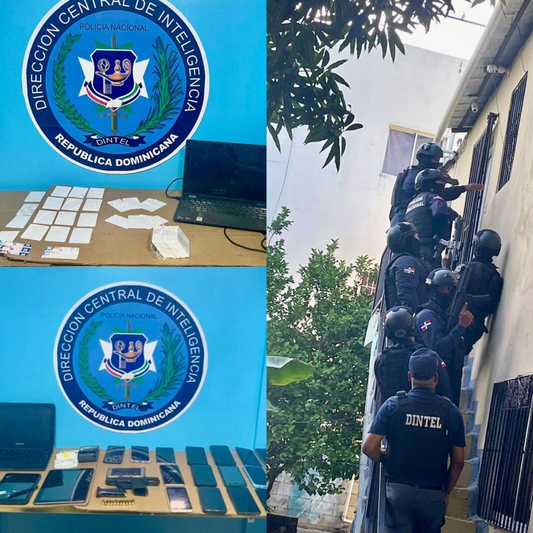 Santiago, RD. – Miembros de la Subdirección Regional Cibao Central de Inteligencia (DINTEL), en coordinación con el equipo táctico SWAT, agentes de la Policía Preventiva y representantes del Ministerio Público, ejecutaron este viernes dos allanamientos simultáneos en distintos sectores de Santiago, donde fueron incautados equipos electrónicos, un arma de fuego, municiones y materiales presuntamente vinculados a la falsificación de documentos.