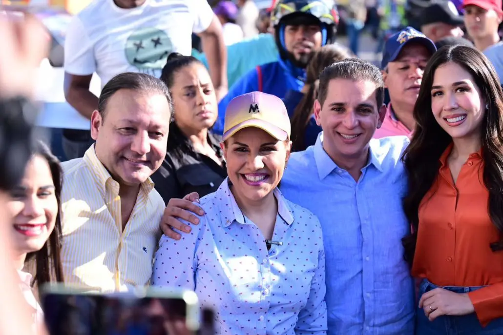 Margarita Cedeño esperó al candidato presidencial del PLD, Abel Martínez en la circunscripción 3 de Santiago, donde el partido morado desarrolla una gran marcha caravana con los candidatos de esa organización en la Ciudad Corazón.