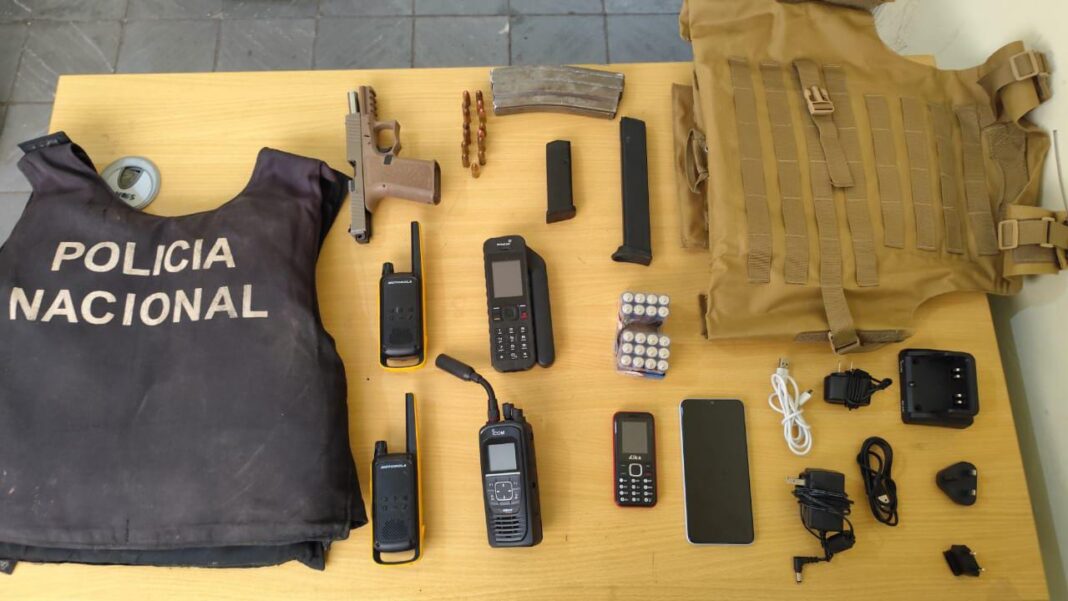 Durante el primer operativo, realizado en el distrito municipal de Juan Esteban, fue arrestado Antonio Rafael Féliz, alias "Mello", a quien se le ocupó en el interior de su residencia una pistola marca Glock, calibre 9mm, con 13 cápsulas, un cargador con capacidad para 30 cápsulas, un chaleco antibalas, un abastecedor para fusil, dos teléfonos satelitales y dos radios de comunicación.
