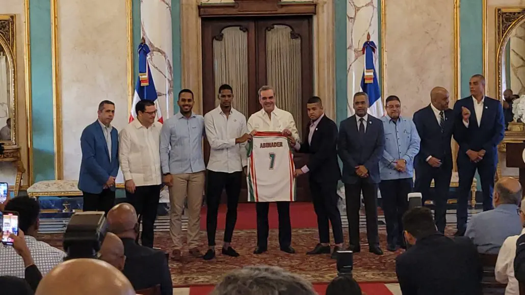Santo Domingo. - Con motivo del Día Nacional del Deporte, el presidente Luis Abinader recibió en el Salón Embajadores del Palacio Nacional, a los campeones del Torneo de Baloncesto Superior del Distrito Nacional 2022, Barrio Mejoramiento Social (Bameso).