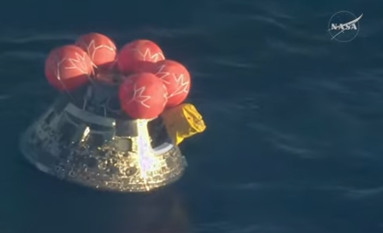 A medida que avanzaba el descenso, la nave redujo su velocidad de forma progresiva hasta permitir el despliegue de los paracaídas, que hicieron posible un amerizaje controlado en aguas del Pacífico, frente a la costa de California.